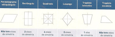 Na sequência, por meio do trabalho com dobradura, apresentamos os eixos simétricos nos diferentes tipos de triângulos e quadriláteros.